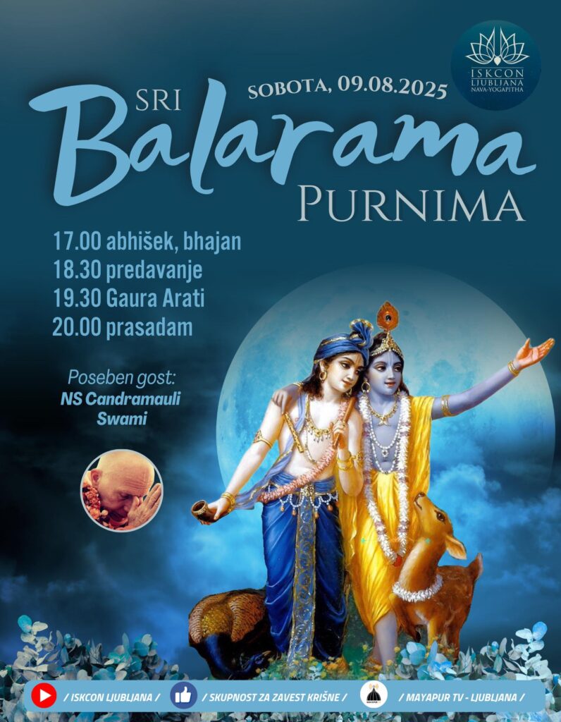 Vabimo vas na praznovanje Balarama Purnime, naslednjo soboto 09. avgusta 2025.