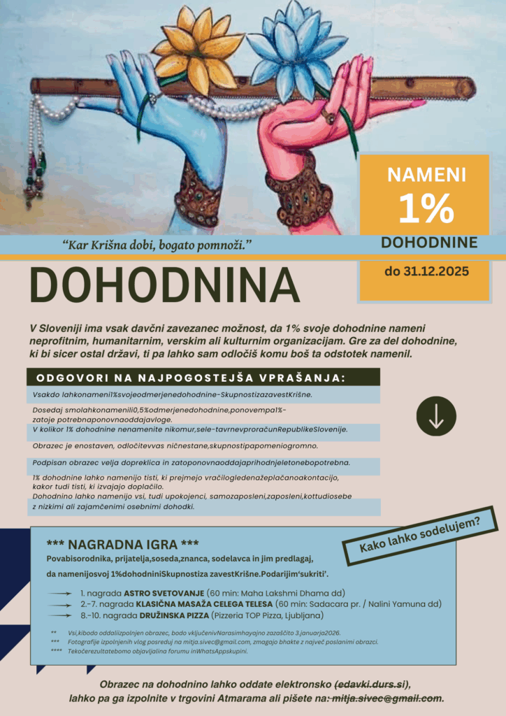 – nakažete prek Paypala https://www.paypal.me/ISKCONLJUBLJANA