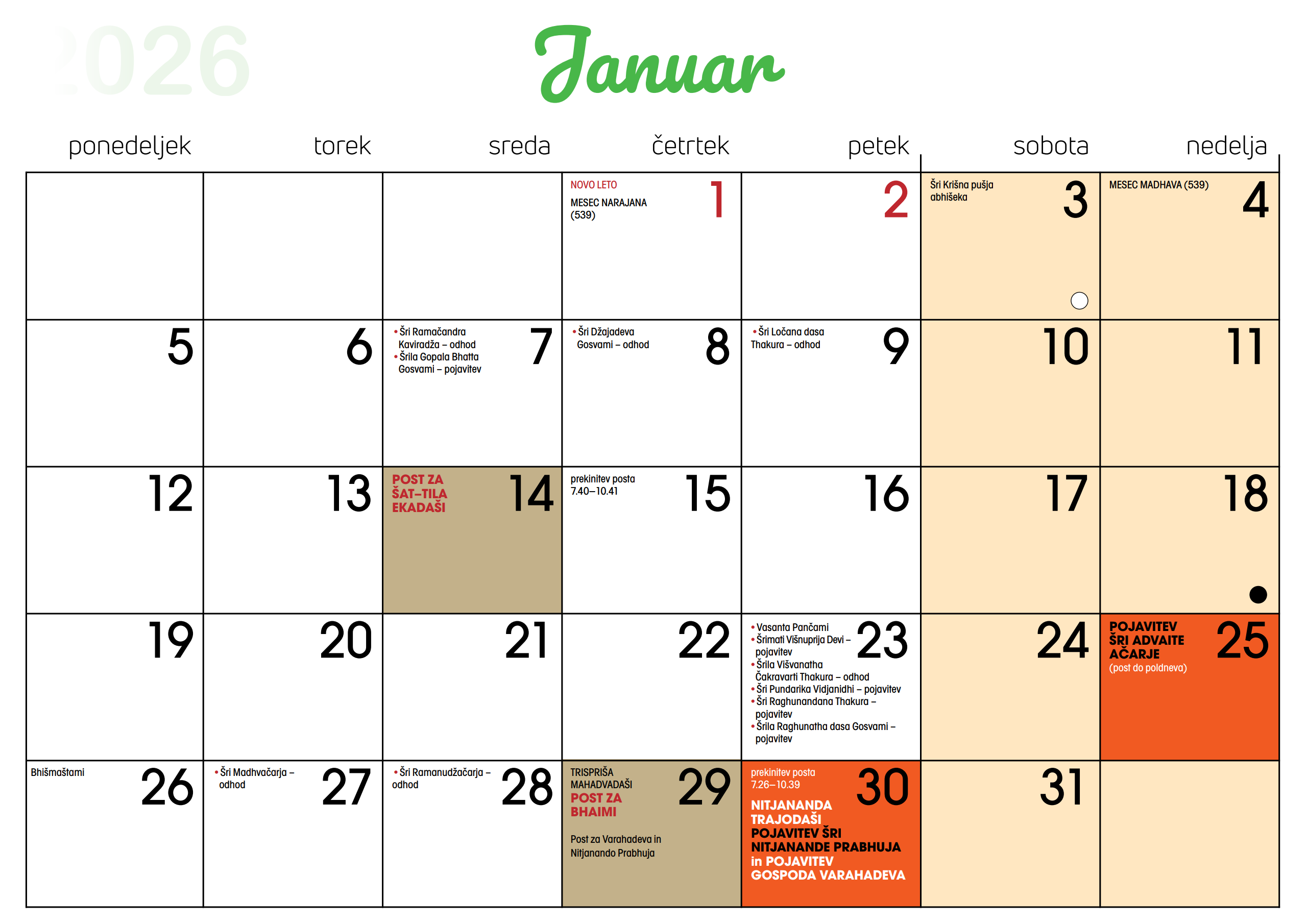 Koledar 2026 JAN - DEC